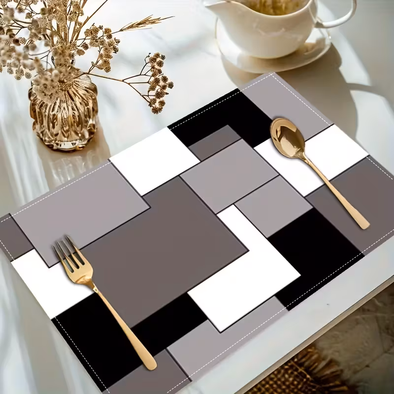 Elegant table mats and matching dinnerware for stylish dining.